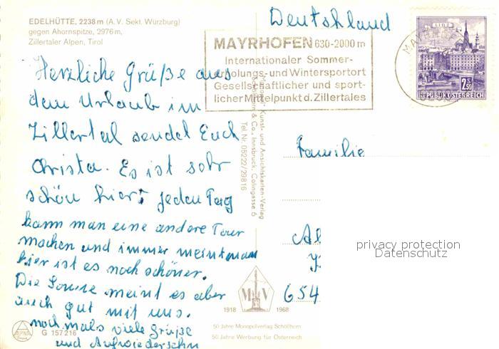 72849794 alte Postkarte Edelhuette Ahornspitze postalisch gelaufen Erhaltung siehe scans [NatalD47] KatCode: 11390335070920