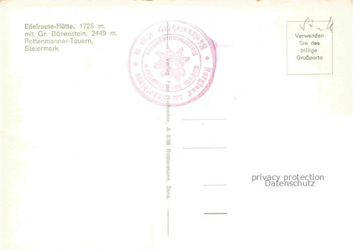 74156377 Edelraute-Huette 1725m Rottenmann Steiermark AT Berghaus Gr-Boesenstein Rottenmanner-Tauern Berggipfel Felswaende Wald Gebirge postalisch nicht gelaufen Erhaltung siehe scans [Karloger] KatCode: 11390222061238
