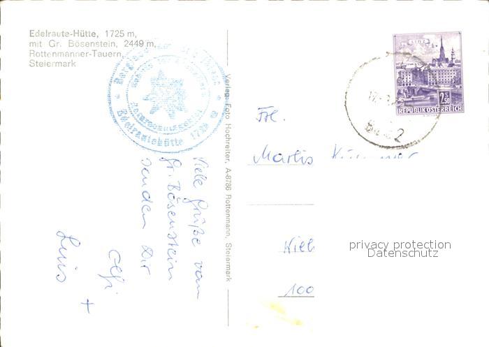 72317377 alte Postkarte Edelrauterhuette Gr. Boesenstein Rottenmanner-Tauern postalisch gelaufen Erhaltung siehe scans KatCode: 11390