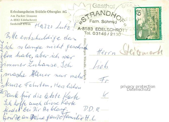 74155904 alte Postkarte Edelschrott Steiermark AT Erholungsheim Stoelzle Oberglas AG Gastraeume Treppe Bar postalisch gelaufen Erhaltung siehe scans [WerneD78] KatCode: 11390225061602