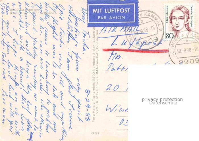 74132374 alte Postkarte Edelstetten Neuburg Kammel Guenzburg Bayern Panorama Kirche Fachwerkhaus postalisch gelaufen Erhaltung siehe scans [FriedD77] KatCode: 11110009774162