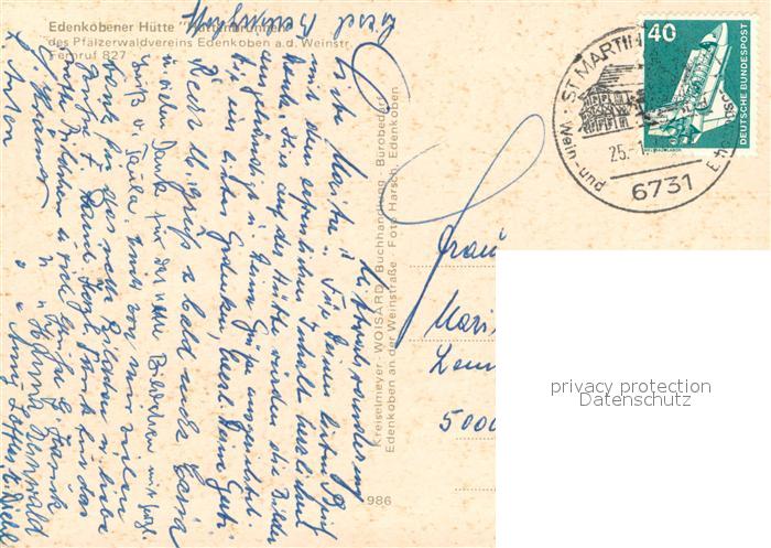 73726246 alte Postkarte Edenkoben Edenkobener Huette Huettenbrunnen Pfaelzerwaldverein postalisch gelaufen Erhaltung siehe scans [FriedD77] KatCode: 11110007337020