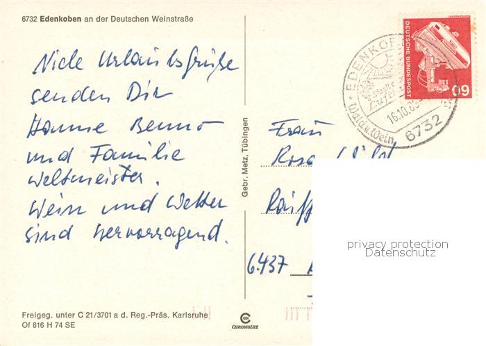 73780464 alte Postkarte Edenkoben Fliegeraufnahme postalisch gelaufen Erhaltung siehe scans [WerneD78] KatCode: 11110007337020