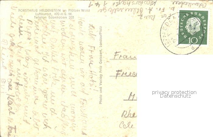 72095369 alte Postkarte Edenkoben Forsthaus Heldenstein postalisch gelaufen Erhaltung siehe scans KatCode: 11110007337020