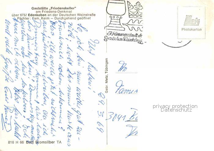 72793443 alte Postkarte Edenkoben Gaststaette Friedensleller postalisch gelaufen Erhaltung siehe scans [AndreD76] KatCode: 11110007337020