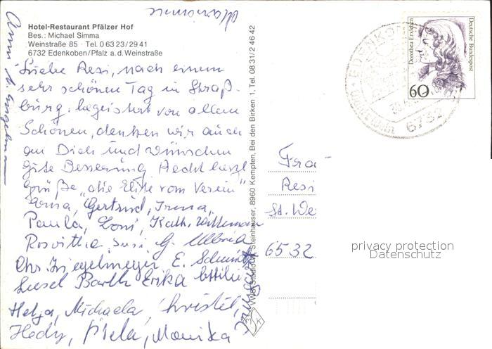 72553226 alte Postkarte Edenkoben Hotel Pfaelzer Hof Gastraeume Kegelbahn postalisch gelaufen Erhaltung siehe scans [WerneD78] KatCode: 11110007337020