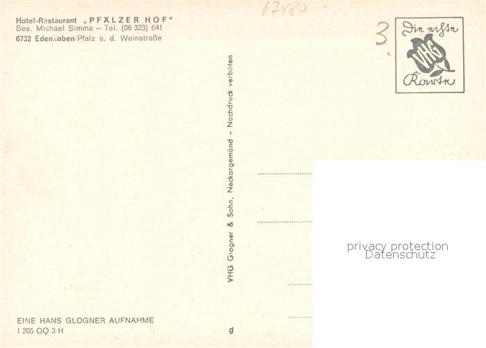 73717180 Edenkoben Hotel Restaurant Pfaelzer Hof Gaststube Kegelbahn postalisch nicht gelaufen Erhaltung siehe scans [WerneD78] KatCode: 11110007337020
