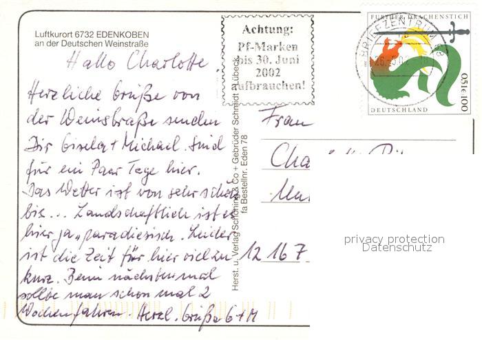 73239888 alte Postkarte Edenkoben Kirche Denkmaeler Koenig Ludwig I Brunnen Weinfaesser postalisch gelaufen Erhaltung siehe scans [KathaD81] KatCode: 11110007337020