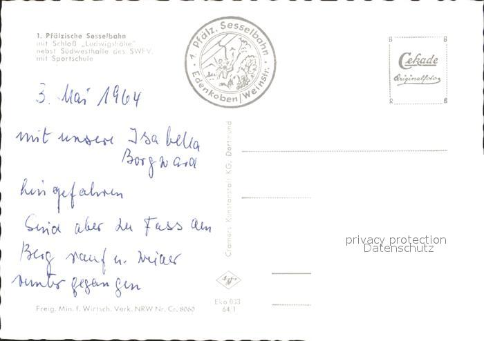 72032288 Edenkoben Schloss Ludwigshoehe Sesselbahn Suedwesthalle Sportschule Fliegeraufnahme postalisch nicht gelaufen Erhaltung siehe scans KatCode: 11110007337020
