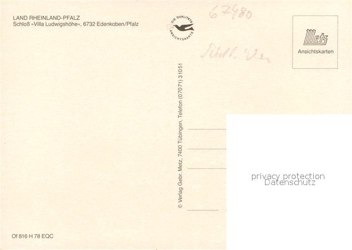 73100044 Edenkoben Schloss Villa Ludwigshoehe Fliegeraufnahme postalisch nicht gelaufen Erhaltung siehe scans [WerneD78] KatCode: 11110007337020