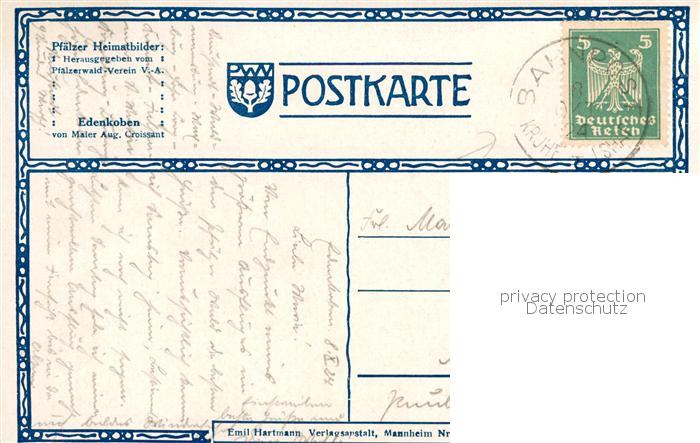 73803508 alte Postkarte Edenkoben Stadtansicht Kuenstlerkarte postalisch gelaufen Erhaltung siehe scans [FriedD77] KatCode: 11110007337020