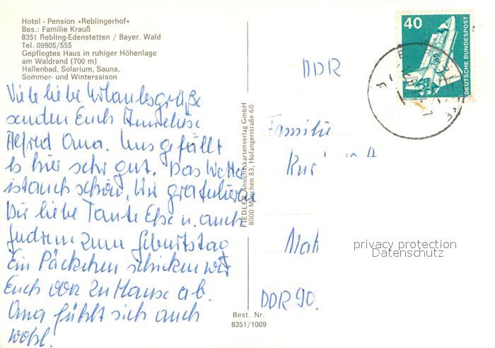 73684241 alte Postkarte Edenstetten Reblingerhof Hotel Pension Schwimmbad postalisch gelaufen Erhaltung siehe scans [LiesaD40] KatCode: 11110009271116