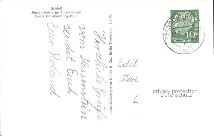 72094239 alte Postkarte Ederbringhausen Schloss-Jugendherberge Hessenstein Fliegeraufnahme postalisch gelaufen Erhaltung siehe scans KatCode: 11110006635019