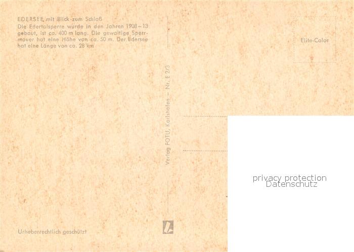 72993781 Edersee Blick zum Schloss postalisch nicht gelaufen Erhaltung siehe scans [AndreD76] KatCode: 11110006635009
