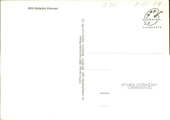 72603336 Edersee DKV Zeltplatz Fliegeraufnahme postalisch nicht gelaufen Erhaltung siehe scans [FriedD77] KatCode: 11110006635009