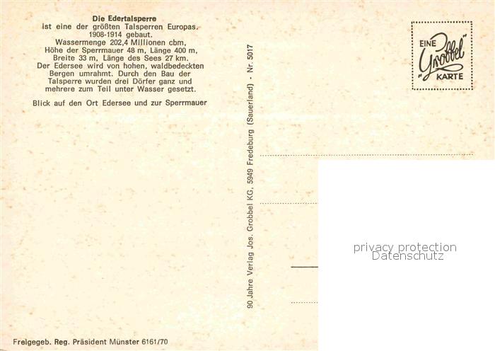 72895605 Edersee Edertalsperre Fliegeraufnahme postalisch nicht gelaufen Erhaltung siehe scans [WerneD78] KatCode: 11110006635009