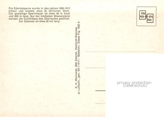 72929905 Edersee Fliegeraufnahme mit Edertalsperre postalisch nicht gelaufen Erhaltung siehe scans [WerneD78] KatCode: 11110006635009