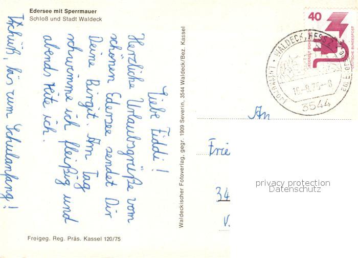 73540246 alte Postkarte Edersee Fliegeraufnahme mit Sperrmauer Schloss und Stadt Waldeck postalisch gelaufen Erhaltung siehe scans [WerneD78] KatCode: 11110006635009