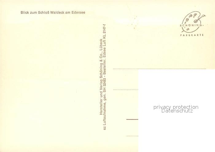 73106608 Edersee Fliegeraufnahme Schloss Waldeck postalisch nicht gelaufen Erhaltung siehe scans [KathaD81] KatCode: 11110006635009