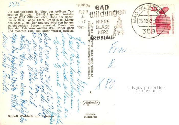 72940755 alte Postkarte Edersee Fliegeraufnahme Schloss Waldeck postalisch gelaufen Erhaltung siehe scans [KathaD81] KatCode: 11110006635009