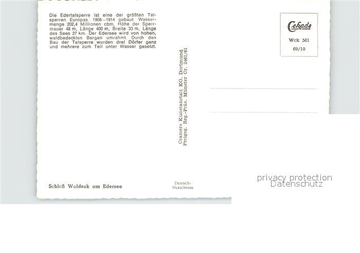 72612458 Edersee Fliegeraufnahme Schloss Waldeck postalisch nicht gelaufen Erhaltung siehe scans [AndreD76] KatCode: 11110006635009