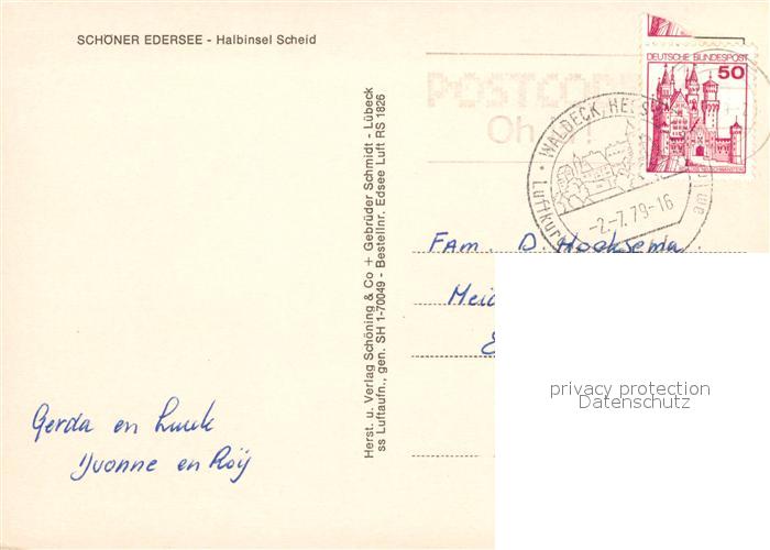 72932430 alte Postkarte Edersee Halbinsel Scheid Fliegeraufnahme postalisch gelaufen Erhaltung siehe scans [WerneD78] KatCode: 11110006635009