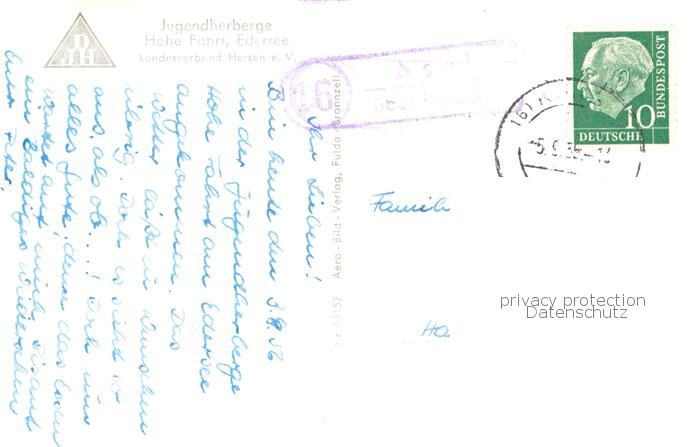 73811998 alte Postkarte Edersee Jugendherberge Hohe Fahrt postalisch gelaufen Erhaltung siehe scans [WerneD78] KatCode: 11110006635009