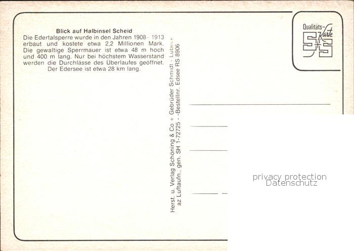 72393177 Edersee mit Halbinsel Scheid Fliegeraufnahme postalisch nicht gelaufen Erhaltung siehe scans KatCode: 11110006635009