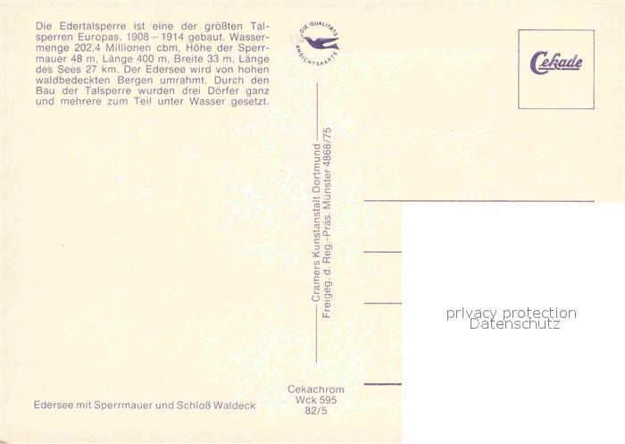 72722994 Edersee mit Sperrmauer Edertalsperre Stausee Schloss Waldeck Fliegeraufnahme postalisch nicht gelaufen Erhaltung siehe scans [FriedD77] KatCode: 11110006635009