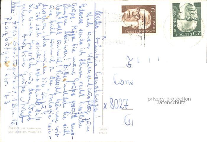72369800 alte Postkarte Edersee mit Sperrmauer und Schloss Waldeck postalisch gelaufen Erhaltung siehe scans KatCode: 11110006635009
