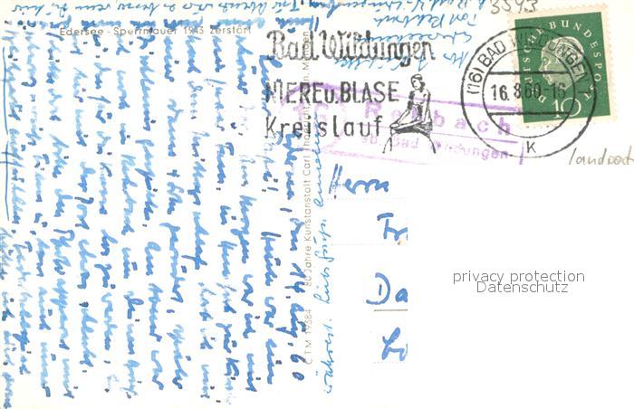 73692473 alte Postkarte Edersee Sperrmauer 1943 zerstoert postalisch gelaufen Erhaltung siehe scans [WerneD78] KatCode: 11110006635009