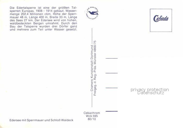 72835038 Edersee Sperrmauer Edertalsperre Schloss Waldeck Fliegeraufnahme postalisch nicht gelaufen Erhaltung siehe scans [FriedD77] KatCode: 11110006635009
