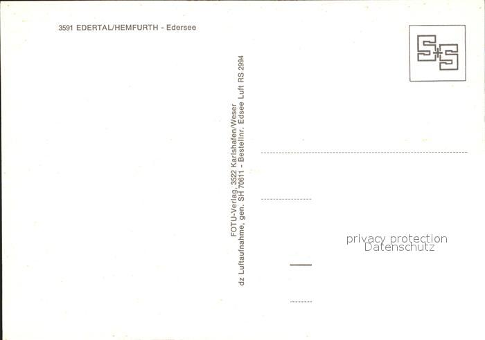 72105487 Edertal Edersee Fliegeraufnahme postalisch nicht gelaufen Erhaltung siehe scans KatCode: 11110006635009