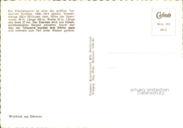 72398097 Edertal Edertalsperre Fliegeraufnahme postalisch nicht gelaufen Erhaltung siehe scans KatCode: 11110006635009