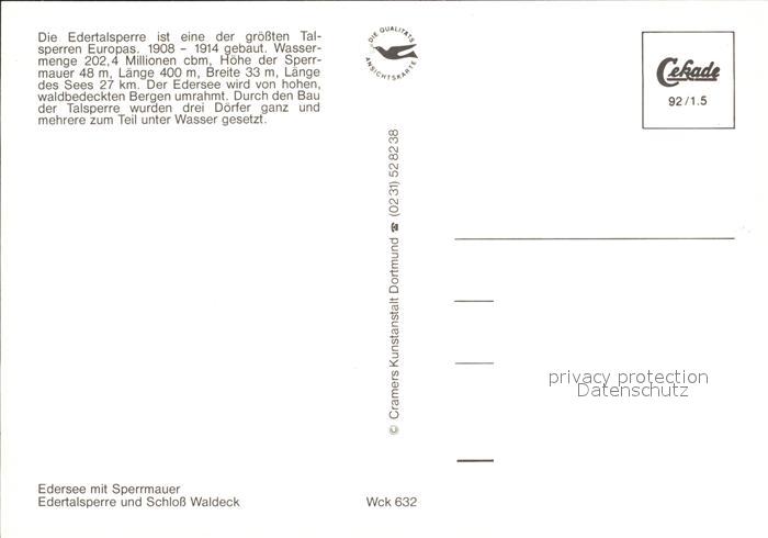 72493307 Edertal Edertalsperre postalisch nicht gelaufen Erhaltung siehe scans KatCode: 11110006635009