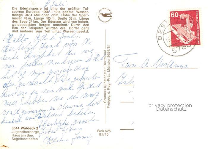72933611 alte Postkarte Edertal Fliegeraufnahme Edertalsperre postalisch gelaufen Erhaltung siehe scans [WerneD78] KatCode: 11110006635009