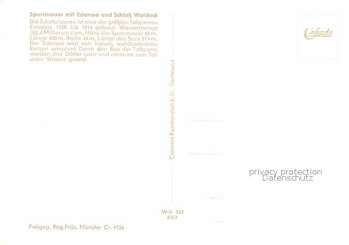 72796867 Edertal Sperrmauer Schloss Waldeck Luftaufnahme postalisch nicht gelaufen Erhaltung siehe scans [KathaD81] KatCode: 11110006635009