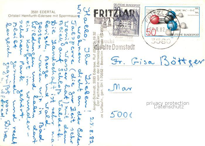 73062775 alte Postkarte Edertal Sperrmauer postalisch gelaufen Erhaltung siehe scans [KathaD81] KatCode: 11110006635009