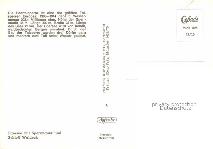 72796866 Edertal Talsperre Sperrmauer Schloss Waldeck postalisch nicht gelaufen Erhaltung siehe scans [KathaD81] KatCode: 11110006635009