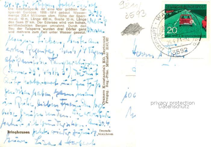 73172500 alte Postkarte Edertalsperre Fliegeraufnahme postalisch gelaufen Erhaltung siehe scans [NatalD47] KatCode: 11110006635009