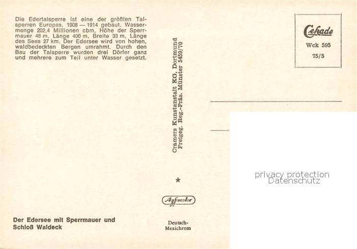 73171695 Edertalsperre Fliegeraufnahme postalisch nicht gelaufen Erhaltung siehe scans [NatalD47] KatCode: 11110006635009