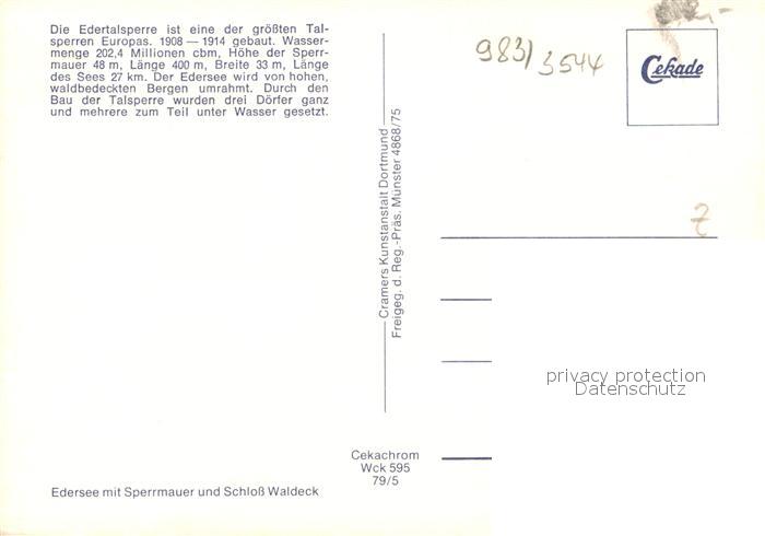 73165463 Edertalsperre Fliegeraufnahme postalisch nicht gelaufen Erhaltung siehe scans [KathaD81] KatCode: 11110006635009
