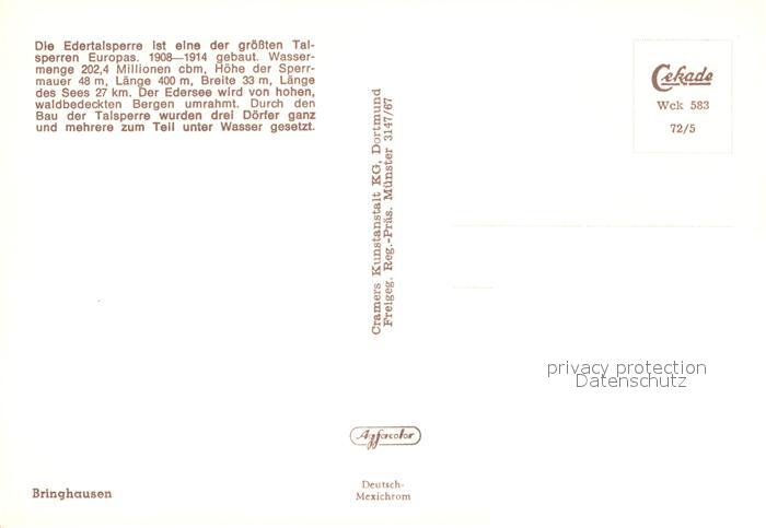 73168684 Edertalsperre Fliegeraufnahme Bringhausen postalisch nicht gelaufen Erhaltung siehe scans [KathaD81] KatCode: 11110006635009