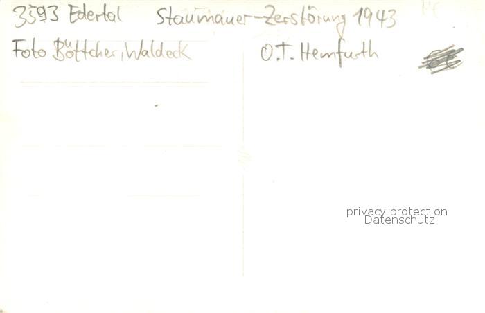 73692401 Edertalsperre Staumauer Zerstoerung 1943 postalisch nicht gelaufen Erhaltung siehe scans [WerneD78] KatCode: 11110006635009