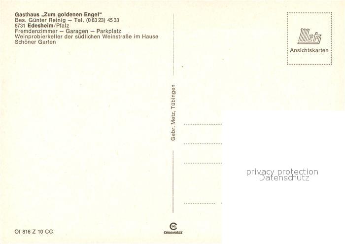 73543012 Edesheim Pfalz Gasthaus Zum goldenen Engel Restaurant postalisch nicht gelaufen Erhaltung siehe scans [FriedD77] KatCode: 11110007337021