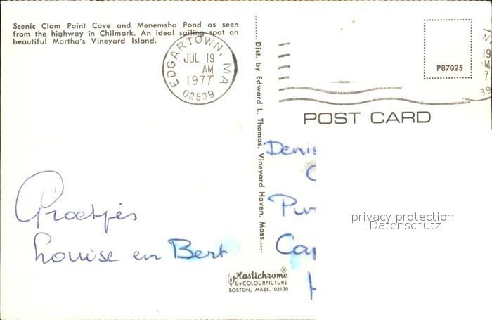 72503382 old postcard Edgartown Blick in die Bucht postalisch gelaufen Erhaltung siehe scans KatCode: 14140230000000