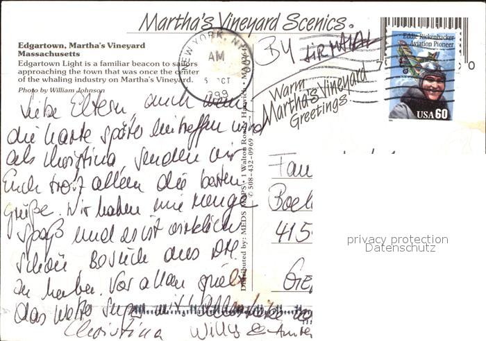 72598443 old postcard Edgartown Lighthouse postalisch gelaufen Erhaltung siehe scans [LiesaD40] KatCode: 14140230000000