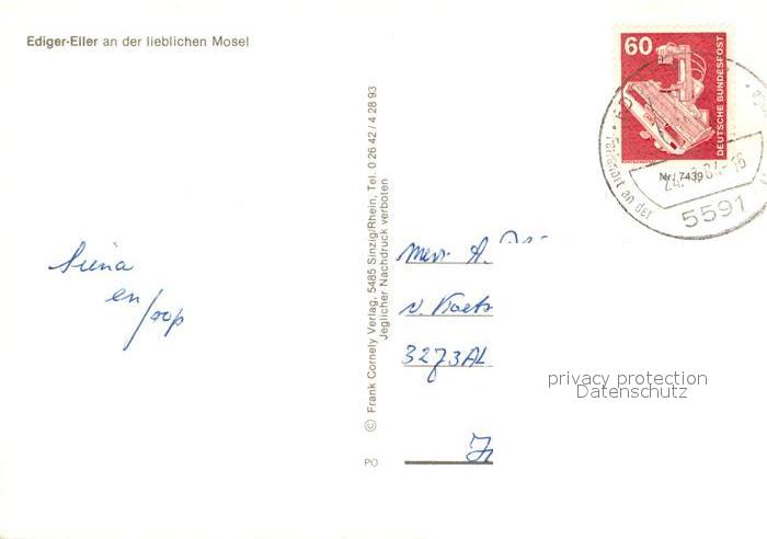 73308183 alte Postkarte Ediger-Eller Flusspartie Fachwerk postalisch gelaufen Erhaltung siehe scans [LiesaD40] KatCode: 11110007135024
