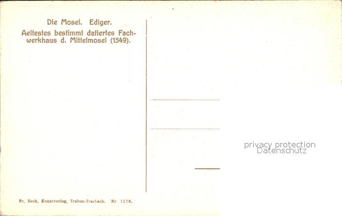 41995687 Ediger Mosel Fachwerkhaus postalisch nicht gelaufen Erhaltung siehe scans KatCode: 11110007135024