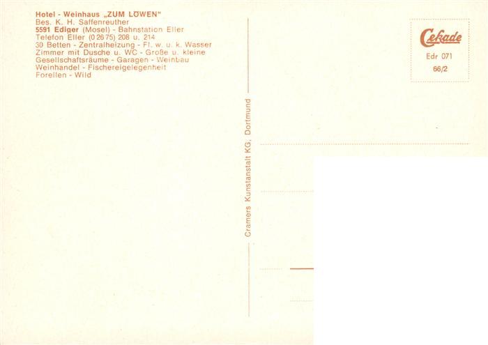 73878081 Ediger Mosel Hotel zum Loewen Weinhaus postalisch nicht gelaufen Erhaltung siehe scans [FriedD77] KatCode: 11110007135024